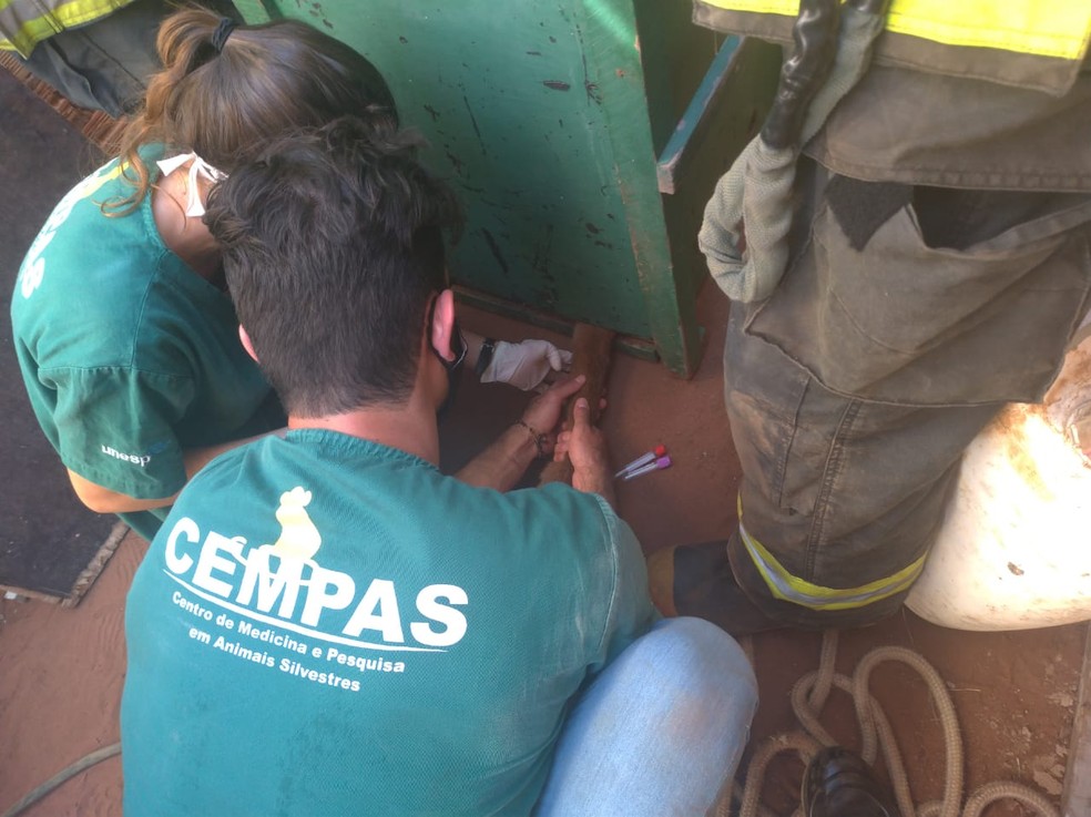 De acordo com o comandante do Corpo de Bombeiros de Avaré, Carlos Alexandre Prandini, os veterinários utilizaram zarabatana e fizeram o disparo de tranquilizante.
