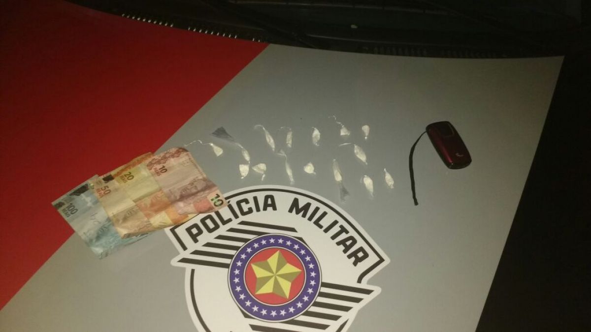 Policiais Militares de Arandu, no dia 01 de outubro, por volta de 2 da madrugada, durante patrulhamento avistaram um indivíduo em atitude suspeita, no qual foi realizada a busca pessoal sendo localizado 16 papelotes de cocaína e uma quantia de $ 180.00 reais em dinheiro no bolso da calça.