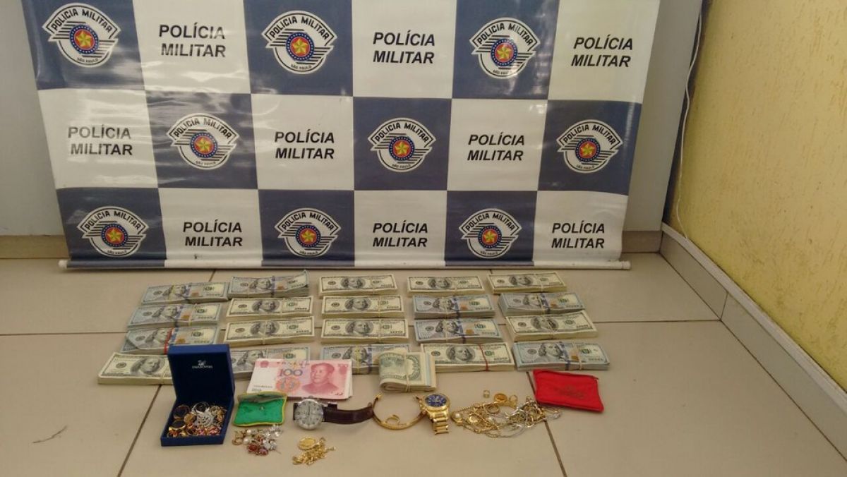 Dois jovens, de 22 e 29 anos, foram presos ao tentarem subornar policiais depois de serem flagrados com 205 mil dólares, 4,8 mil renminbi, moeda chinesas, e diversas joias no interior de um ônibus, na rodovia Castello Branco (SP-280), em Avaré (SP), nesta quinta-feira (15). Segundo a polícia, o dinheiro e as joias eram furtados.