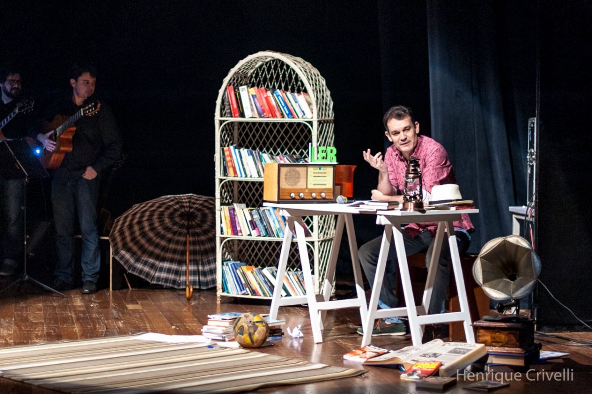 Na apresentação a literatura e a música ‘conversam’ no palco. A proposta teve lançamento no Teatro Municipal de Bauru em outubro último. O espetáculo de 1h50 de duração demarca a estreia do autor na literatura. Ele faz interpretações teatrais de trechos de crônica, contos, reportagens e dissertação elaborados no livro que conta, ainda, com um CD encartado.