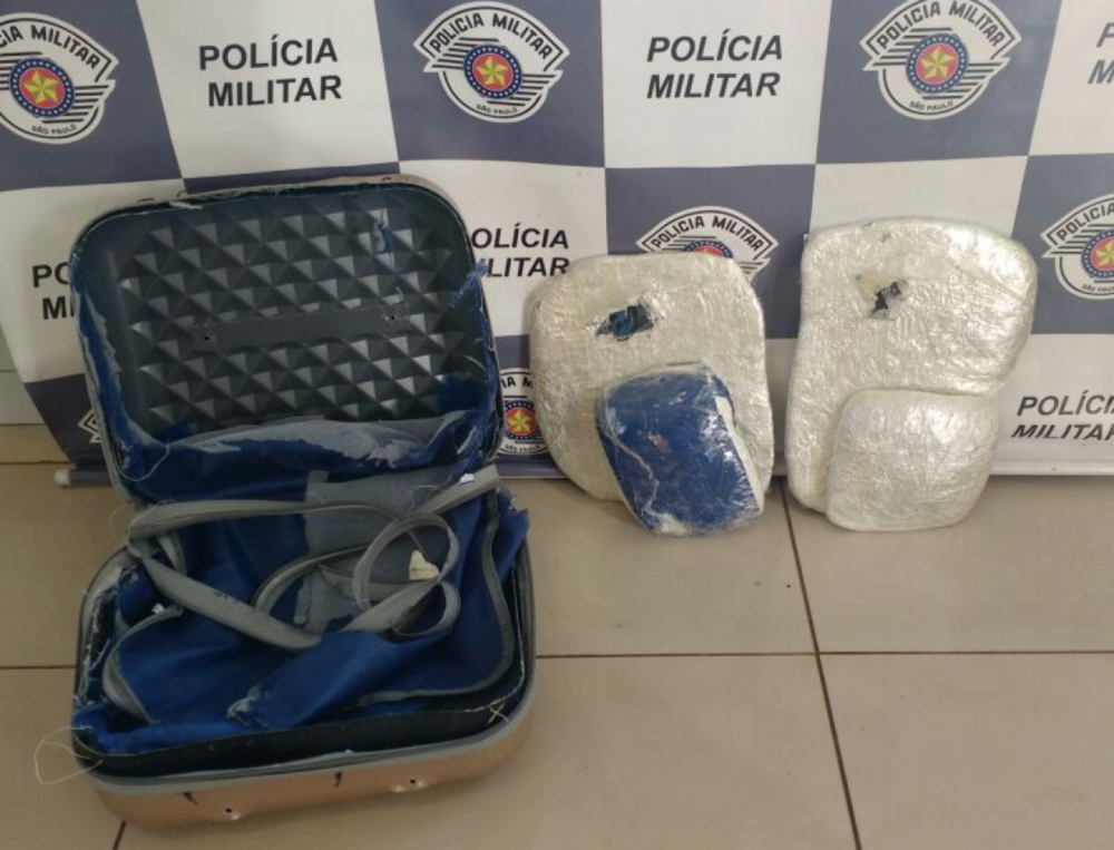 De acordo com aPolícia, após realizar vistoria veicular, foi localizado, na forração de uma maleta e, sob o assento de uma passageira, 4 tabletes da droga haxixe, envoltos com papel alumínio e fita adesiva.