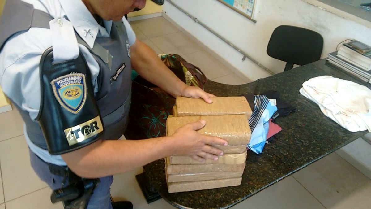 Segundo a PM, no decorrer das buscas e entrevista com os ocupantes do coletivo, ao indagar o passageiro que ocupava a poltrona nº 42, este aparentou estar nervoso com respostas contraditórias acerca da viagem que fazia, fato que levou a equipe a proceder busca pessoal e no local onde estava acomodado, sendo localizado sob a poltrona uma bolsa de nylon marrom contendo 13 tabletes de maconha, envoltos em fita adesiva na cor amarela que eram ocultados por peças de roupas.