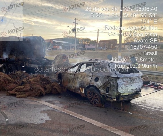 A madrugada deste domingo (28) foi marcada por dois acidentes fatais em trechos da Rodovia SP-255, no interior de São Paulo. Um motorista de carro morreu após uma colisão frontal com um caminhão que resultou em um violento incêndio em Avaré. Horas antes, um motociclista perdeu a vida após colidir com uma carreta em Taquarituba.