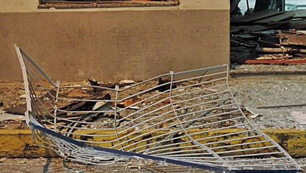 Até a grade de proteção da agência bancária foi arrancada na ação do grupo.