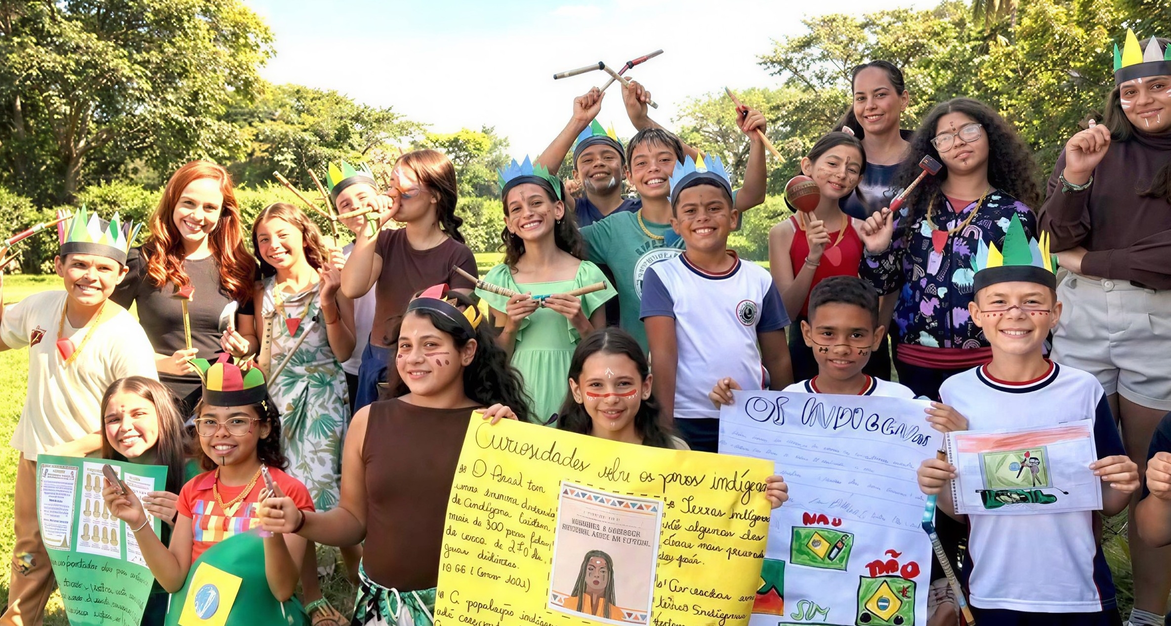 As atividades também integraram o uso de tecnologia, com registros fotográficos das produções e a criação de composições visuais que remetem ao contexto das aldeias indígenas.