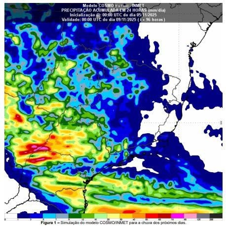 De acordo com o órgão estadual, há condições para chuvas intensas acompanhadas de granizo isolado, alta incidência de raios, rajadas de vento extremas e possibilidade de microexplosões (downbursts) pontuais.