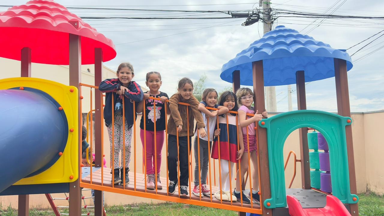 Os alunos da Escola Municipal Professora Alzira Pavão agora contam com um novo playground para os momentos de lazer.