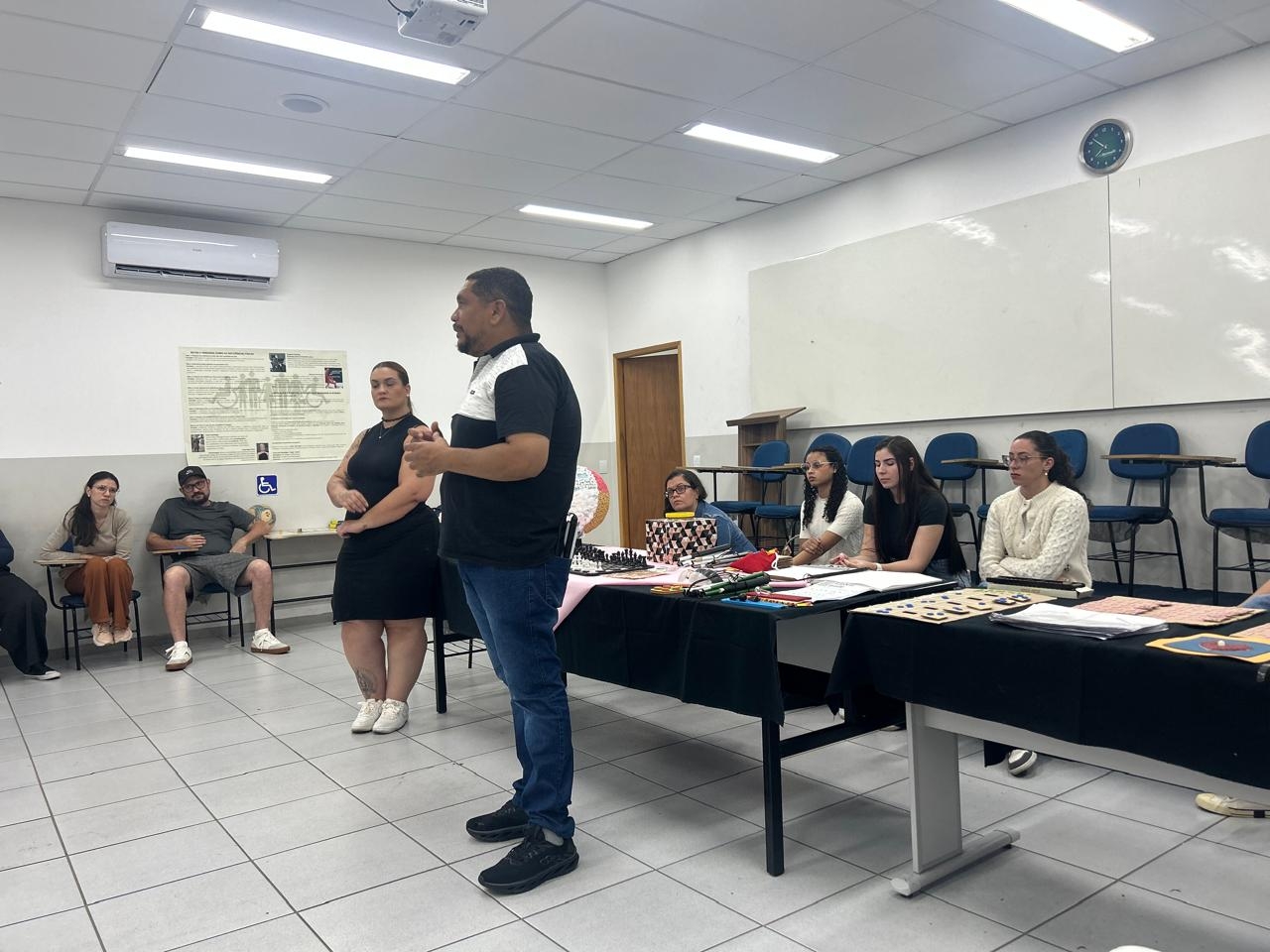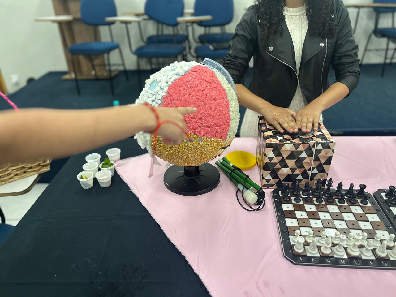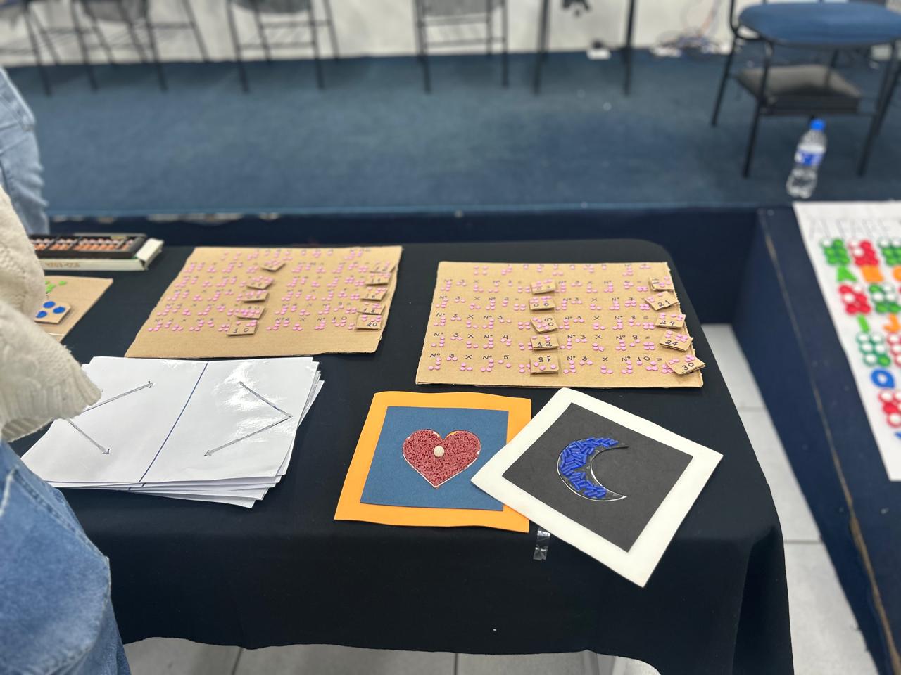 Em uma mesa tátil, o mundo se revelou através das pontas dos dedos. Os futuros psicólogos conheceram ferramentas de inclusão que são verdadeiras janelas para o mundo: a reglete (negativa e positiva) para escrever em braile, o xadrez adaptado, o soroban (uma calculadora de bolinhas), o alfabeto braile e as bengalas sinalizadoras.
