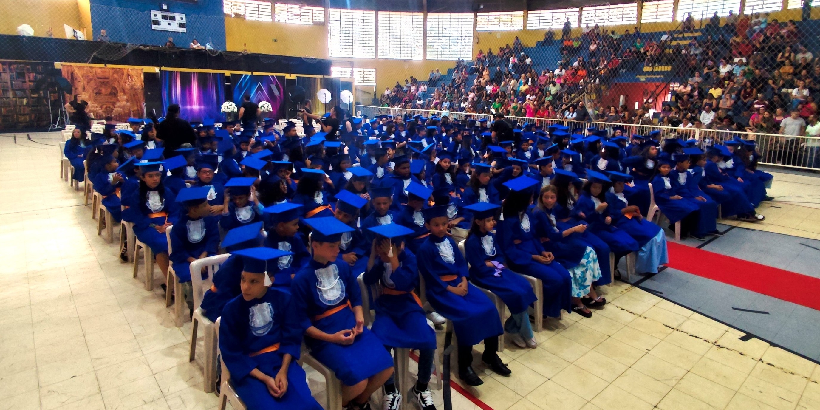 O Ginásio Kim Negrão vem sendo palco da solenidade de formatura dos alunos da Rede Municipal de Ensino.