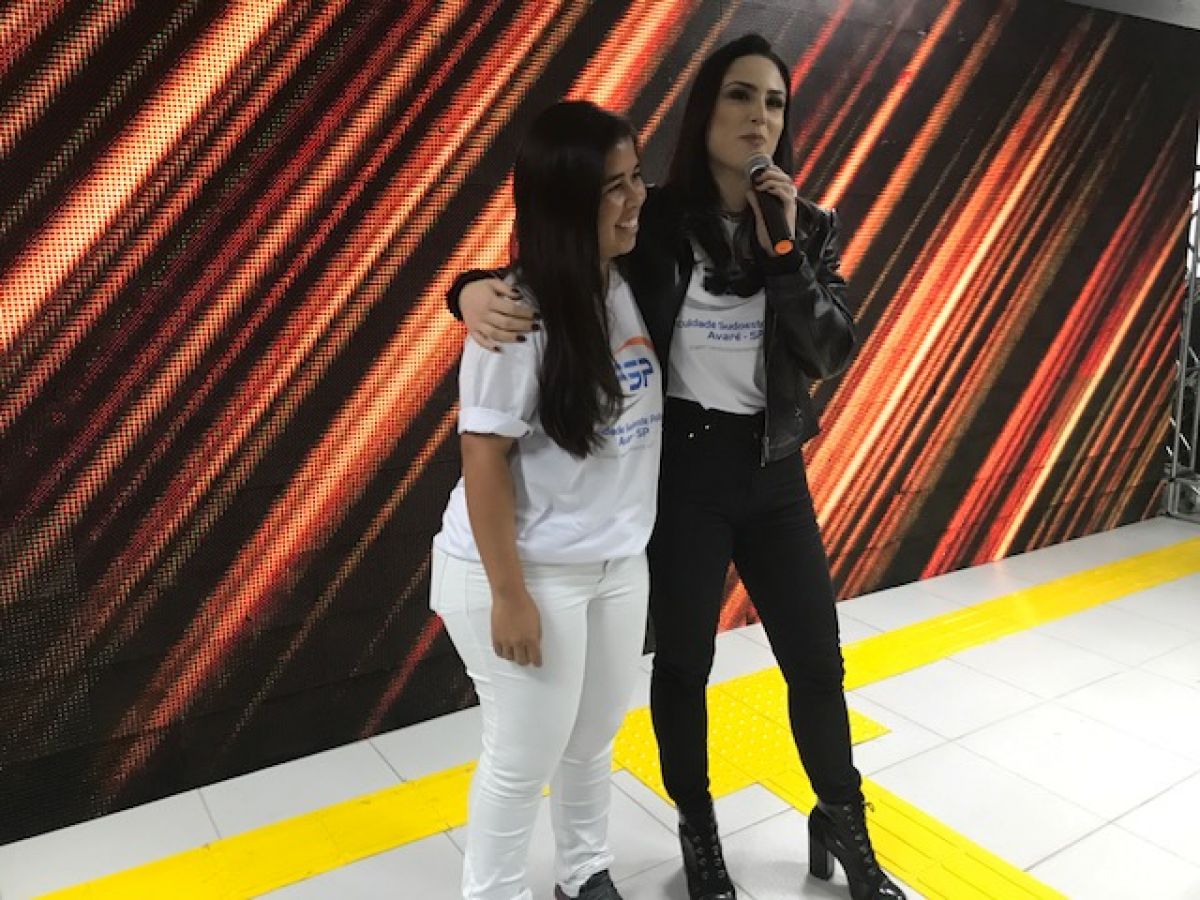 Na ocasião, a artista levou a aluna Jaqueline E. de Oliveira do curso de Fisioterapia para realizar seu sonho. A Faculdade escolheu dos alunos diversos sonhos, e a comtemplada esteve com Mariah em SP.