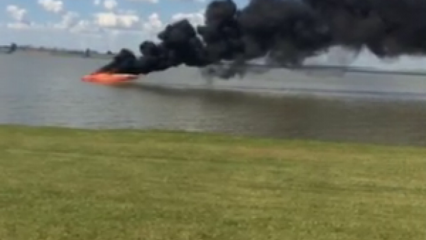 Uma lancha que estava nas águas, simplesmente, pegou fogo e foi totalmente destruída.