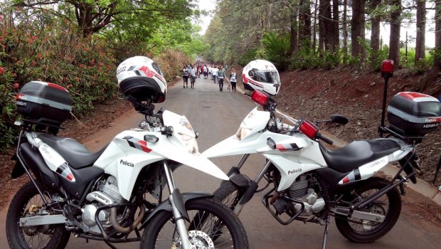 A PM ao dar apoio e segurança, a polícia também ajudou a manter a ordem na carreata com motocicletas até o Santuário de Nossa Senhora das Dores, de onde os fiéis deram prosseguimento as festividades e louvor.