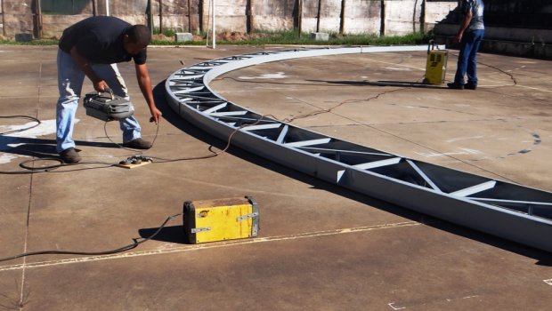 Os trabalhos já estão em execução na EMEB Professora Norma Lília Pereira, no bairro Santa Mônica, onde serão empregados recursos da ordem de R$ 447.794,47. A escola será dotada de uma quadra poliesportiva coberta com arquibancada e vestiários. O espaço servirá para uso de atividades complementares ao currículo escolar, além de receber as aulas de Educação Física.