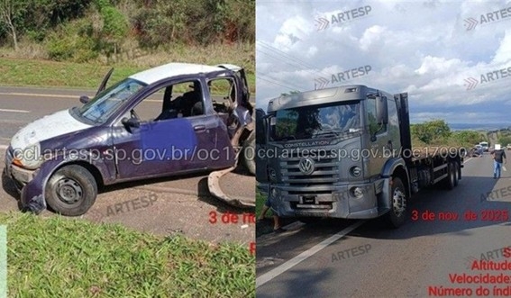 Um homem morreu após um acidente entre um carro e um caminhão na Rodovia João Mellão (SP-255), em Itaí (SP), na tarde desta segunda-feira (3).