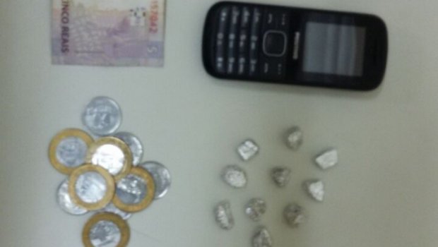 Conforme a PM foi dado continuidade as diligências, quando em patrulhamento pela rua 9 de Julho foi avistado 3 pessoas adentrando em um veículo Gol de cor branca, sendo um deles com características semelhantes às colhidas no local, os quais foram imediatamente abordados, efetuando busca pessoal nos suspeitos foi encontrado em posse de um deles 10 pedras de crack, 1 porção de maconha um canivete com vestígios de sangue R$ 12,50 em notas e moedas e uma chave de um carro, sendo um deles identificado como o autor do roubo, possuindo vários artigos do Código Penal, como “art 157 (ROUBO) por 5 vezes”, “155 e 33 (TRÁFICO)”.