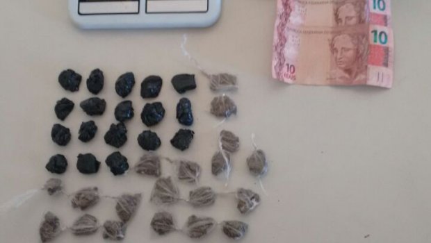 Verificando o local indicado, os PMs encontraram a citada lata e, em seu interior havia 42 porções de maconha em plástico preto além de R$20,00 (vinte reais) em espécie