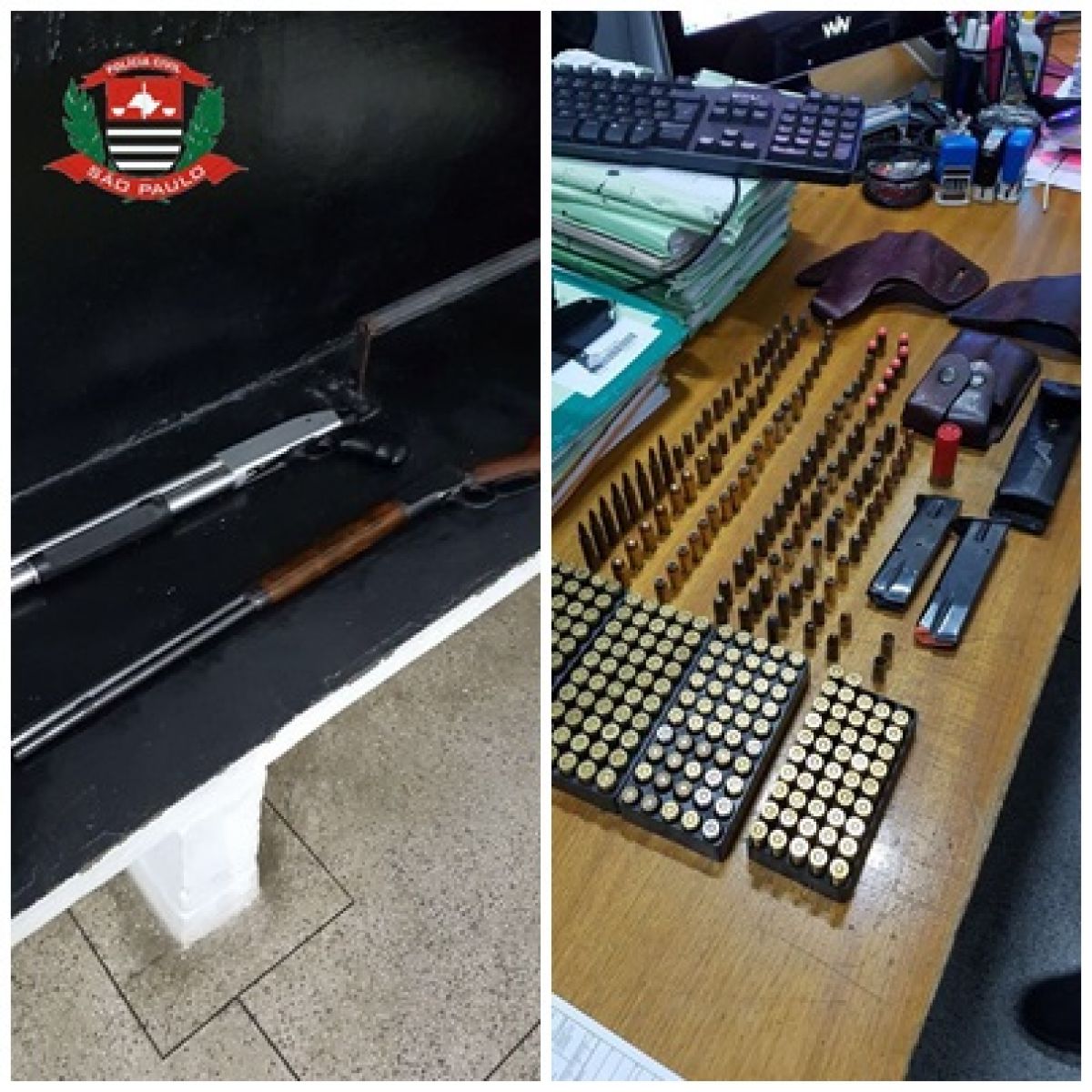 Em sua residência duas armas de calibres 12 e 22, além de munições foram apreendidas.