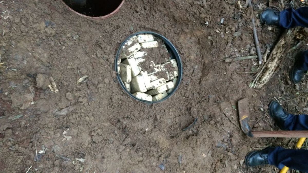 A droga estava armazenada em tambores enterrados em uma área florestal da cidade, no bairro Ibiti.