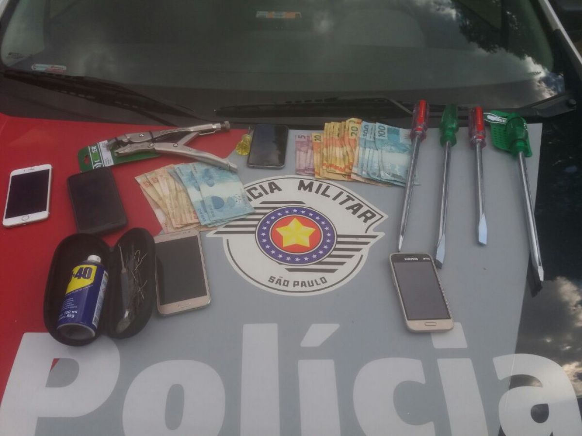 Ainda segundo a PM, outra viatura logrou êxito em localizar o veículo. Diante da denúncia foi realizada abordagem nos 5 indivíduos não sendo nada encontrado em poder de ambos, porém na busca veicular foi encontrado a quantia de R$1.580,00 no porta luvas e mais R$ 570,00 espalhados no banco traseiro, juntamente com uma mixa, uma chave de fenda e um alicate.
