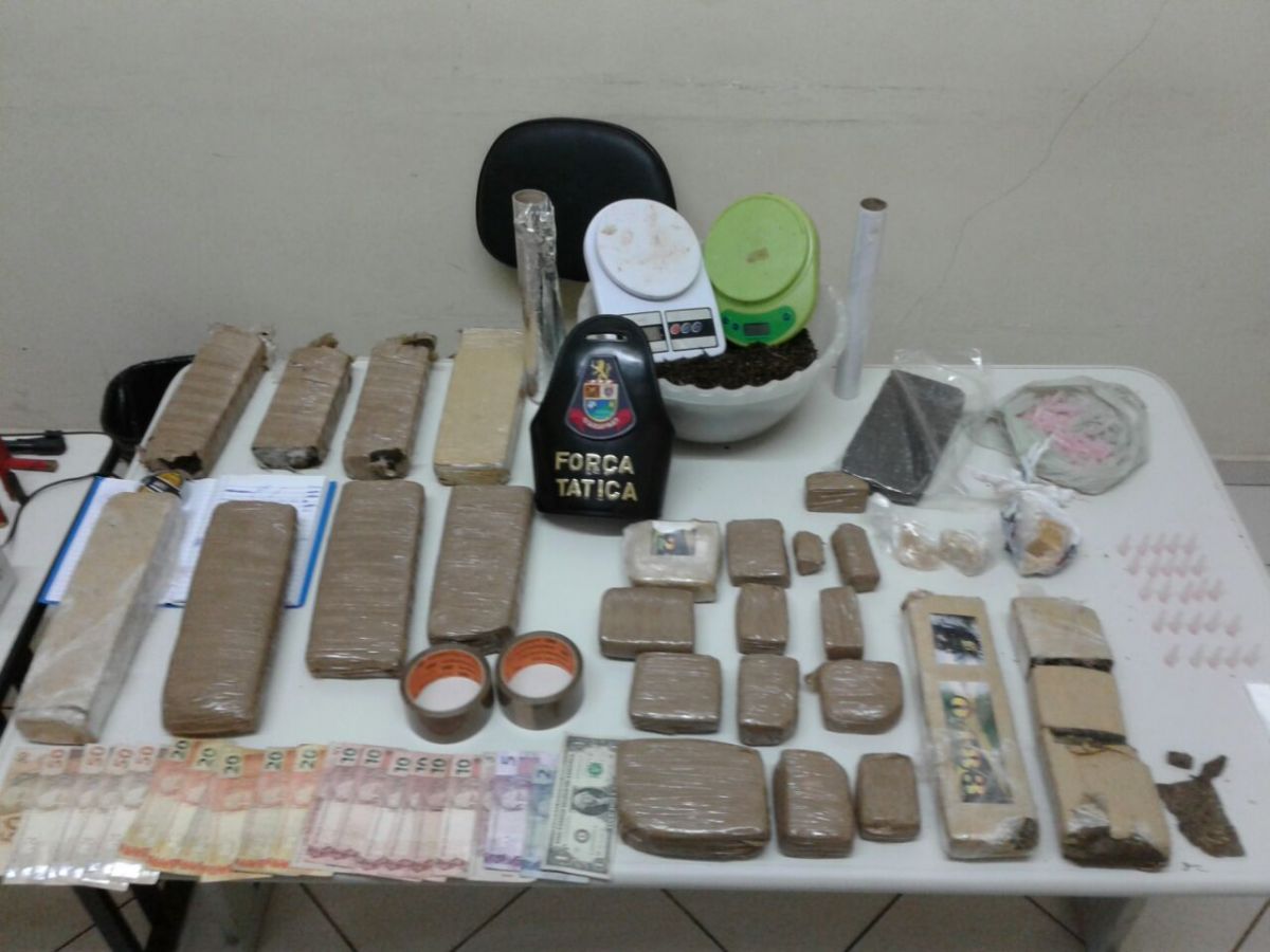 Mais armas e drogas - A PM foi até o local, onde foi encontrado mais 3 tijolos de maconha e 7 tabletes pesando cerca de 2.973,5kgs, além de mais um pote cheio de maconha a granel pesando 1.596,7kgs, 1 arma de fogo cal. 28 espingarda com uma munição intacta, materiais para embalagem, duas balanças de precisão, 14 munições deflagradas de cal 28, 01 munição deflagrada cal. 40, uma espingarda de pressão 5.5mm marca Rossi e uma atiradeira "Besta" com duas Flechas utilizados para segurança do tráfico.