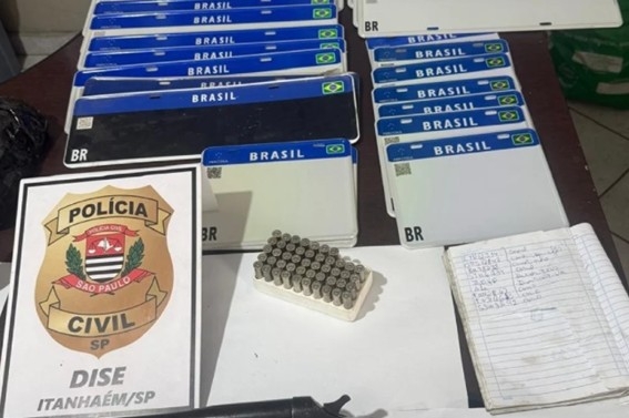 Nessa terça-feira, equipes da Delegacia Especializada – Dise de Itanhaém foram até a rua Roberto Apelian, no bairro Gaivotas, onde encontraram a “fábrica de placas do PCC”, que funcionava em um cômodo do imóvel investigado.