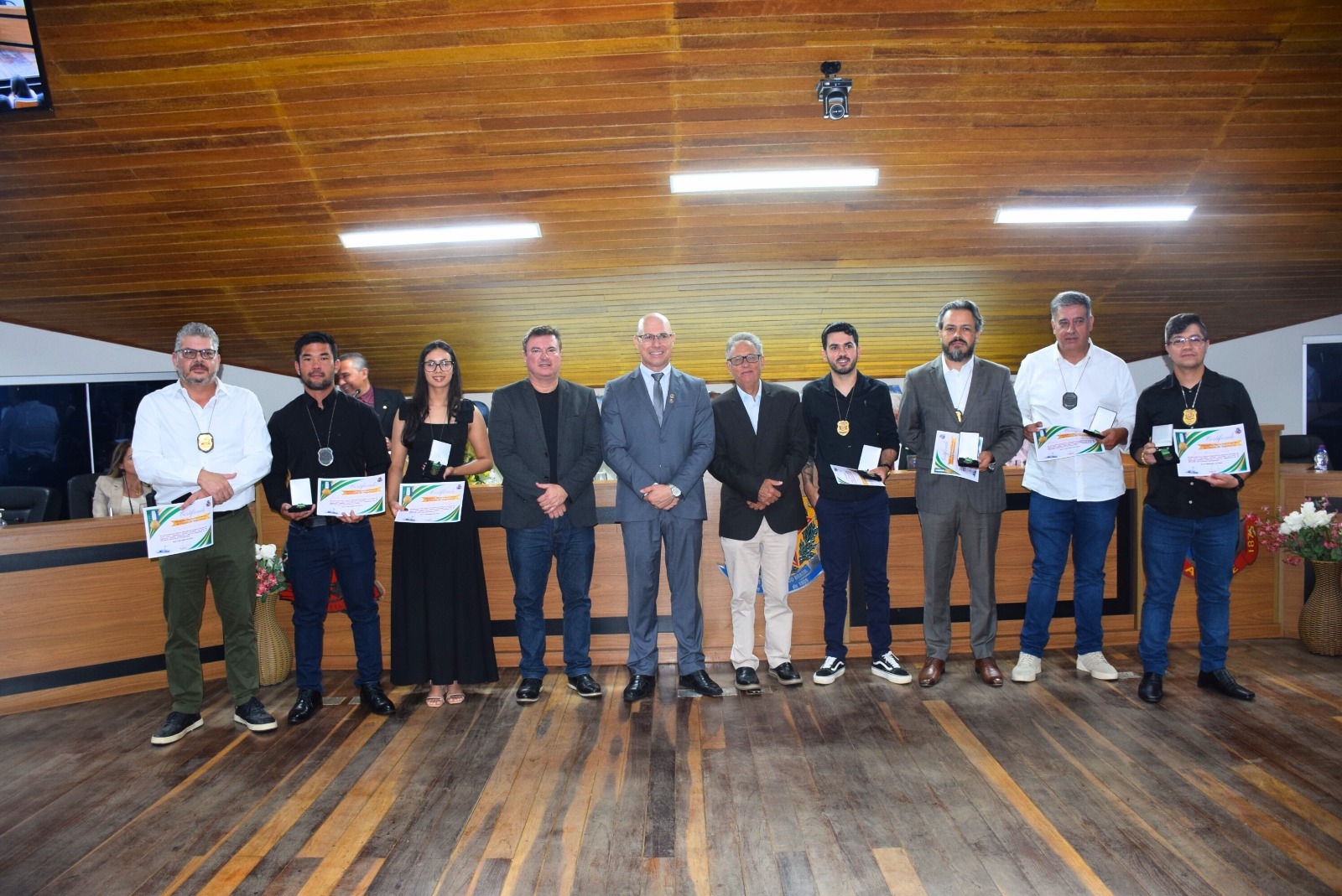 Além da Polícia Civil, a solenidade também prestou tributos a integrantes de outras forças de segurança que atuam no município. Foram homenageados representantes da Polícia Militar, do Corpo de Bombeiros, da Polícia Militar Rodoviária, da Polícia Ambiental, da Polícia Penal (SAP), do Sindicato dos Vigilantes, da Guarda Municipal, do Tiro de Guerra e da Associação dos Veteranos, todos indicados por suas instituições.