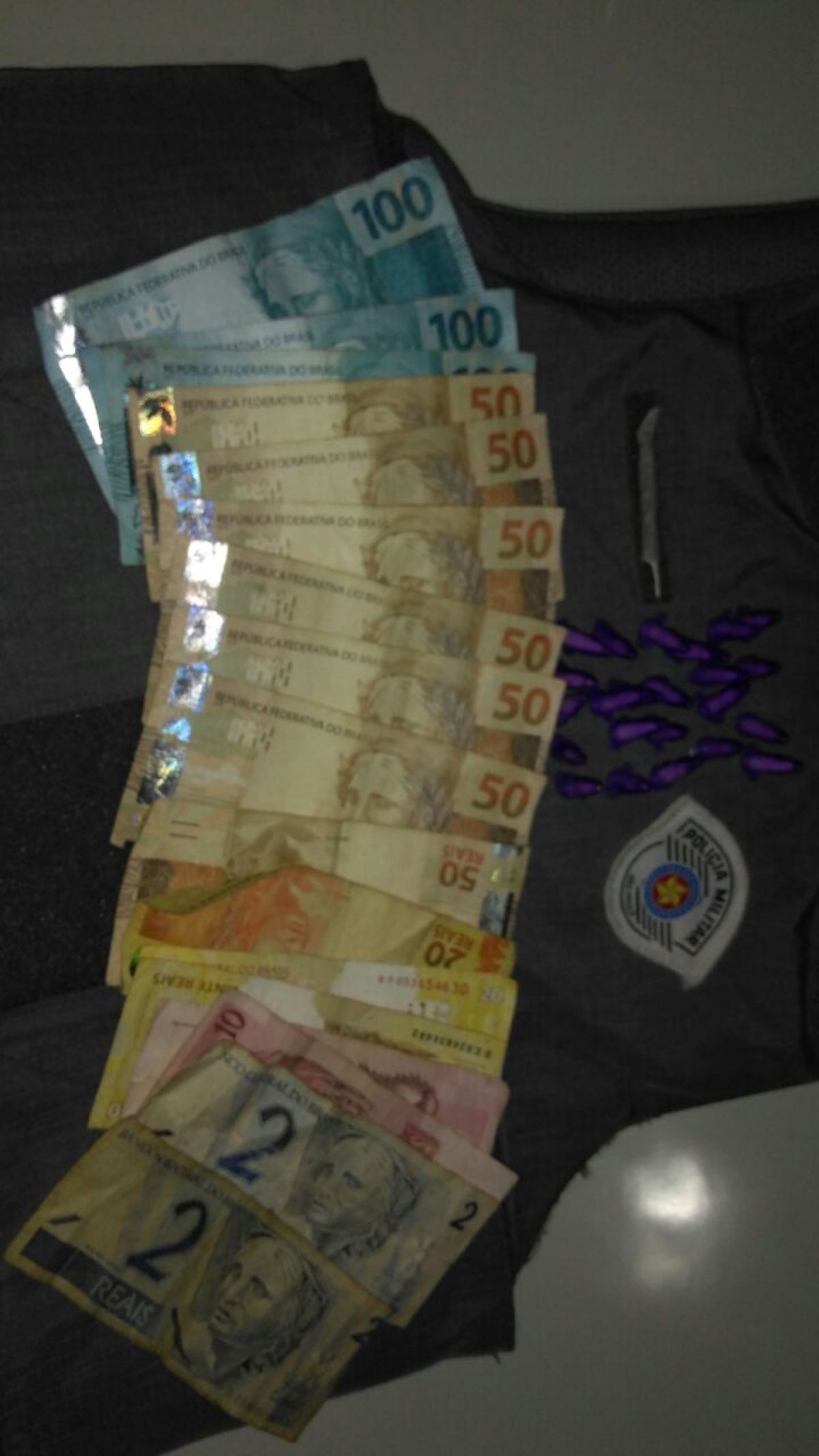 De posse do menor e da droga, os policiais começaram a procurar o traficante. Depois de intenso patrulhamento, ele foi localizado em sua residência, onde os PMs encontraram 720,00 reais e 1 cigarro de maconha.