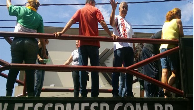 Cerca 540 funcionários fizeram um ato defronte à prefeitura e depois saíram pelas ruas centrais de Avaré pedindo o apoio da população.