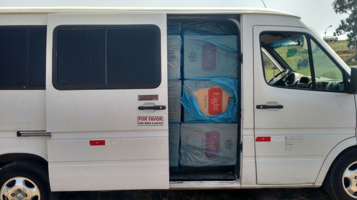 Segundo a polícia ao realizar a vistoria veicular, foi localizado, 121 caixas de cigarro de marcas diversas.