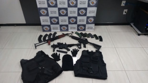 Segundo a polícia, dentro da mala foi localizado as armas e objetos. Foram encontrados 2 fuzis e uma submetralhadora, bem como, munições e 2 coletes a prova de balas.