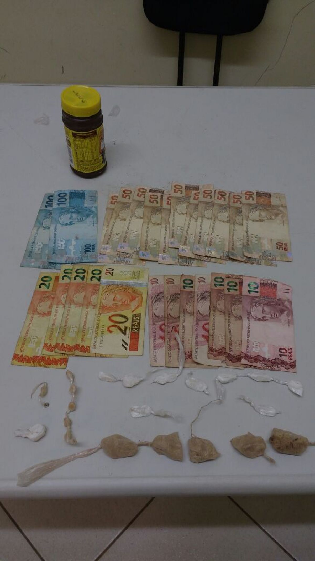 Em sua residência foi possível localizar mais 5 porções de crack, 9 porções de cocaína e R$ 910,00 reais em dinheiro, tudo acondicionado em um pote de achocolatado em uma prateleira no quarto. A PM não divulgou o nome do traficante.