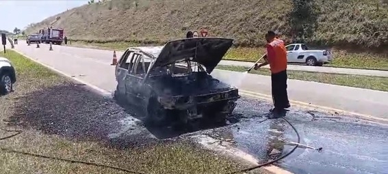 De acordo com a Defesa Civil municipal, dois carros se envolveram no acidente. O momento em que as chamas são apagadas foram registradas pelo órgão. Assista acima.